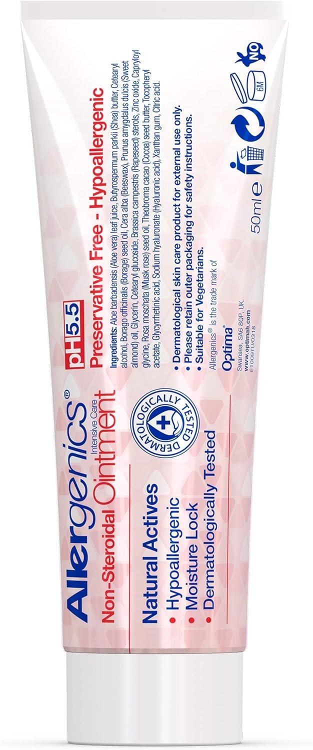 Crafted by Optima Health through rigorous dermatological studies, Allergenics® Intensive Care Ointment (50ml) is a deeply soothing topical emollient designed for those prone to sensitive or reactive skin conditions. With a blend of hypoallergenic, plant-derived ingredients, this non-steroidal formulation keeps your skin comforted, wrapped in moisture, and protected from future flare-ups:
