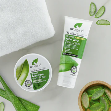 - Organic Aloe Vera Juice: Helps soothe inflamed, dry, or sun-damaged skin while promoting natural healing