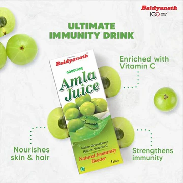 Baidyanath Amla Juice is made from 100% pure Indian gooseberry (Amla) – one of the most potent natural sources of Vitamin C and antioxidants known in Ayurvedic healing. Sourced from premium quality fruit and cold-pressed to preserve nutrients, this 1-litre bottle supports your body’s natural defense, skin regeneration and metabolic balance.
