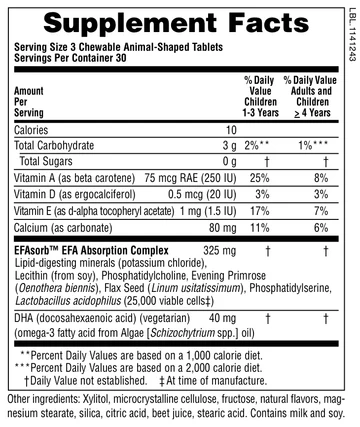 - DHA (40 mg per tablet): Supports developing brains, memory, and learning ability