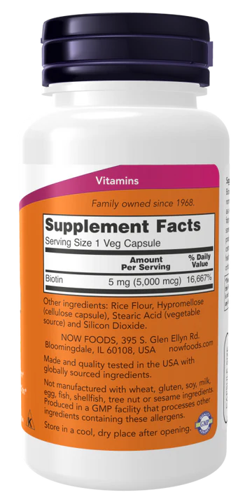 Introducing Biotin Capsules 5000mcg (60’s) from Now Foods – a high-potency, vegetarian-friendly supplement designed to activate beauty and wellness from within. With 5000mcg of pure Biotin per capsule, this formula supports cellular energy, skin repair, and keratin infrastructure—key to healthy hair and nails.