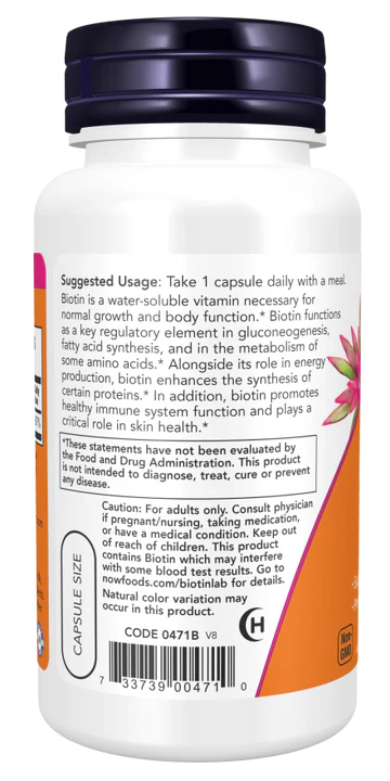 Biotin helps convert food into energy and supports the health of your hair, skin, nails, and nervous system. It is vital for keratin infrastructure and cellular metabolism.