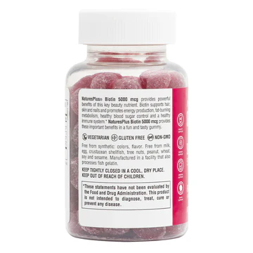Made with natural raspberry flavor and free from harsh additives, NaturesPlus Biotin Gummies are a safe, effective choice for daily wellness support.