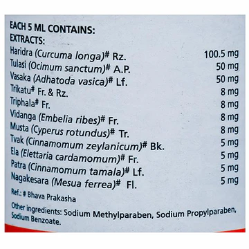 Bresol Syrup works by regulating immune response to allergens and enhancing mucociliary clearance. Curcumin from turmeric inhibits NF-kappa B, a protein that fuels inflammation. Holy Basil reduces histamine overproduction while combating oxidative stress. Vasaka (Malabar Nut) acts as a mucolytic and bronchodilator, making breathing easier and reducing chest congestion.