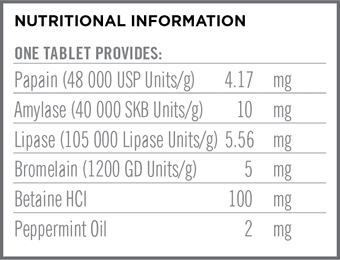| Strength | Comprehensive Enzyme Complex + Betaine HCl | Extra Strength Therapeutic Dose |