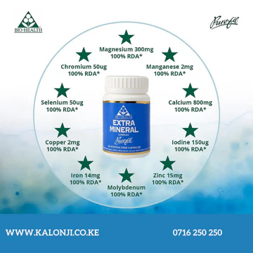 Imagine waking up each day feeling fatigued, battling brain fog, muscle cramps, or even brittle nails – all signs your body might be missing vital minerals. In Kenya’s fast-paced, high-stress lifestyle coupled with nutrient-poor modern diets, mineral deficiencies are more common than you think. Extra Mineral Complex Capsules by Kyjani are your daily defense — designed to restore natural vitality, support strong bones, and enhance whole-body function from the inside out.