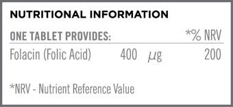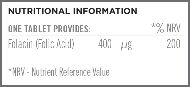 - Clinically Recommended Dose: 400ug folic acid per tablet — ideal for pre-pregnancy and early pregnancy support