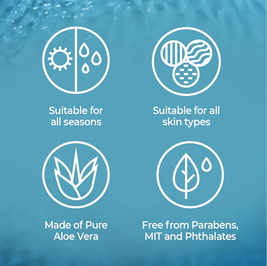 Aloe vera is rich in polysaccharides and enzymes that penetrate deep into the skin layers to deliver hydration, reduce inflammation, and support skin regeneration. When applied, it forms a protective, breathable layer that nourishes and repairs the moisture barrier. Without proper moisture, the skin becomes prone to irritation, breakouts, and premature aging—this gel helps to reverse and prevent that cycle.