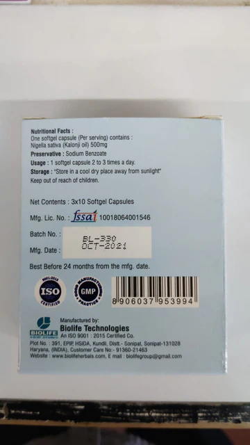 | Recommended Dosage | 1 capsule, 2 to 3 times daily after meals | Clear Usage Instruction |