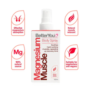 BetterYou Magnesium Oil Muscle Spray is your daily post-workout essential. This expertly formulated body spray blends ultra-absorbable magnesium chloride with arnica, energising lemon oil, and warming capsicum – delivering rapid muscle relief, improved circulation, and effective magnesium restoration after physical activity. It’s the upgraded replacement of the popular Magnesium Oil Recovery Spray, now more effective than ever.