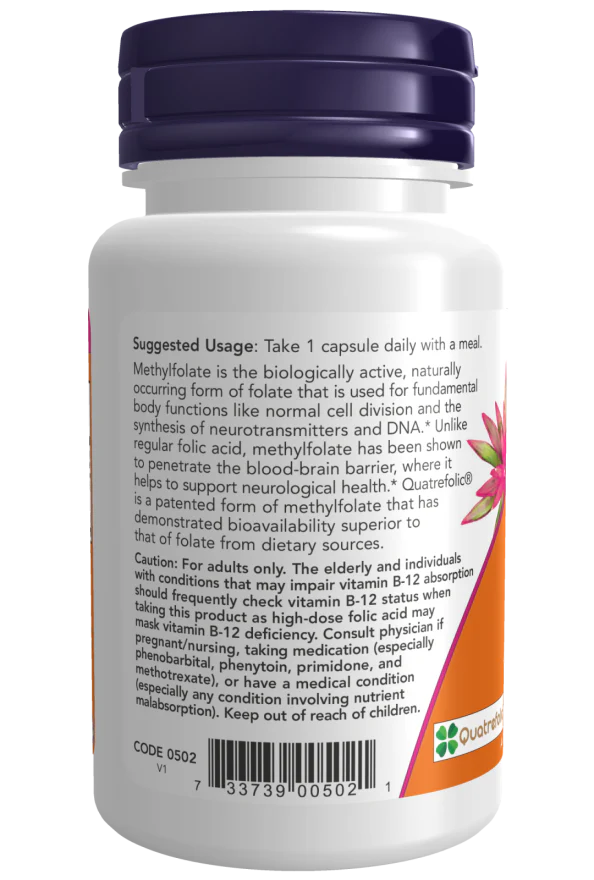 Safety Note: Adults only. Those with vitamin B-12 absorption issues, or on medications affecting folate metabolism (such as methotrexate or anticonvulsants), should consult a healthcare provider. Pregnant or nursing women should use under medical guidance. High folate intake may mask B-12 deficiency. Keep out of reach of children.