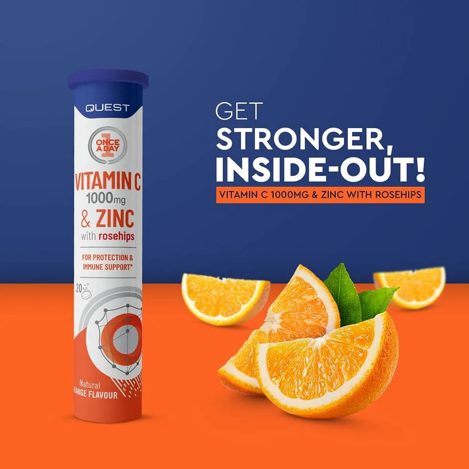 This high-strength immune-support formula from Quest combines 1000mg of Vitamin C with 10mg of Zinc and 50mg of Rosehip extract in a fast-dissolving, great-tasting orange effervescent tablet. Crafted for optimal absorbability and maximum effectiveness, it’s your daily line of defense against illness and fatigue.