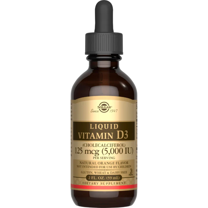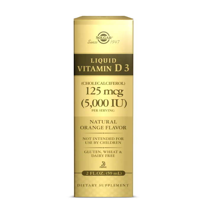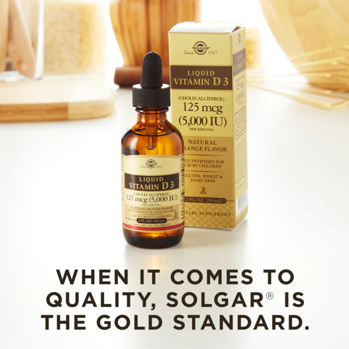 Solgar® Liquid Vitamin D3 5000 IU is a high-potency, orange-flavoured supplement designed for fast absorption. Trusted globally, Solgar has brought this easy-to-use formula to support your bone strength, immune defenses, and nerve function all in a tasty, sugar-free liquid.